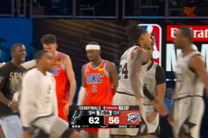 火气十足!斯图尔特和杰伦·布朗卡位互相推搡 双方皆吃T!