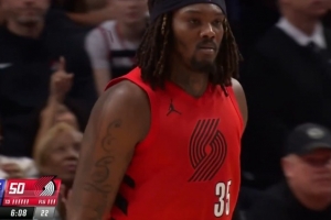 火气十足!斯图尔特和杰伦·布朗卡位互相推搡 双方皆吃T!