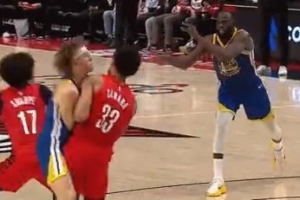 火气十足!斯图尔特和杰伦·布朗卡位互相推搡 双方皆吃T!