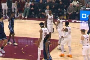 火气十足!斯图尔特和杰伦·布朗卡位互相推搡 双方皆吃T!