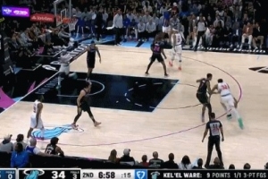 火气十足!斯图尔特和杰伦·布朗卡位互相推搡 双方皆吃T!