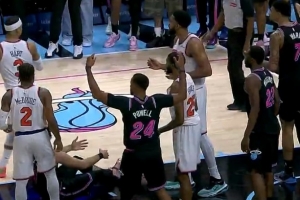 火气十足!斯图尔特和杰伦·布朗卡位互相推搡 双方皆吃T!