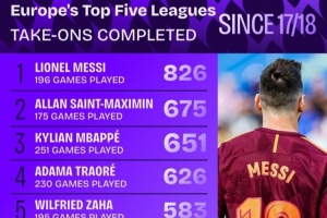 体育资讯11月19日讯 Squawka统计自17-18赛季以来,五大联赛球员成功过人次数,梅西以826次居首,圣马克西曼、姆巴佩排在二三位。