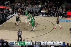 火气十足!斯图尔特和杰伦·布朗卡位互相推搡 双方皆吃T!