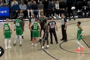 火气十足!斯图尔特和杰伦·布朗卡位互相推搡 双方皆吃T!