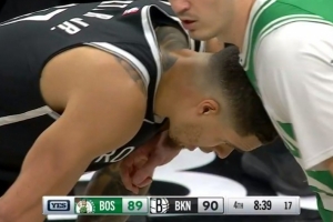 火气十足!斯图尔特和杰伦·布朗卡位互相推搡 双方皆吃T!