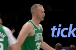 火气十足!斯图尔特和杰伦·布朗卡位互相推搡 双方皆吃T!