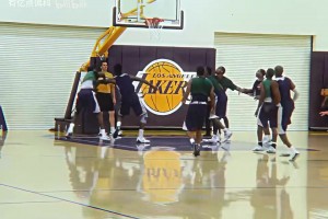 火气十足!斯图尔特和杰伦·布朗卡位互相推搡 双方皆吃T!